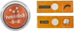 Súčasťou setu sú dve pripravené sklíčka s vzorkami (kačacie perie a bavlnené vlákna) a ďalšie štyri prázdne sklíčka pre vlastnú prípravu vzoriek. Toto zariadenie umožňuje deťom pripravovať si vlastné vzorky, čo ešte viac angažuje ich záujem a zručnosti. V balení sa nachádzajú aj základné nástroje, ako napríklad pinzeta a plastový skalpel, pre ľahkú prípravu vlastných vzoriek.