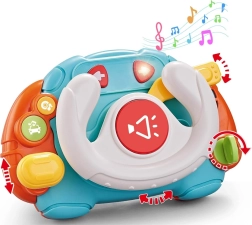 Tento farebný volant je skvelý pre deti, ktoré milujú napodobňovať riadenie. Realistické funkcie ako otáčanie volantom, prepínanie blikačov a štartovanie kľúčikom dopĺňajú svetelné efekty a zvuky motora, klaksónu i hudby. Hračka je ľahká, skladná a ľahko sa zmestí do kočíka či cestovnej tašky.