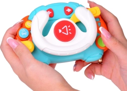 Volant podporuje rozvoj jemnej motoriky, sluchového vnímania aj koordinácie oko–ruka. Vďaka viacerým režimom prehráva klaksón, 3 melódie aj 4 hudobné a zvukové stopy, pričom stredové tlačidlo sa rozsvieti do rytmu.