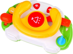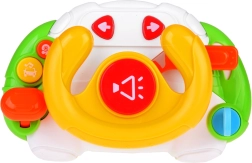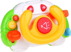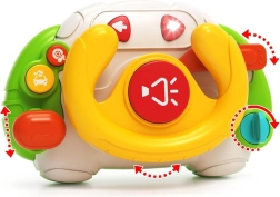 Tento farebný detský volant podporuje fantáziu, zmyslový rozvoj a koordináciu rúk. Deti môžu otáčať volantom doprava aj doľava, používať kľúčik na „naštartovanie“ motora a zapínať smerovky so skutočnými zvukmi. Veselé melódie a svetelné efekty udržia pozornosť malých vodičov doma aj na cestách.