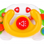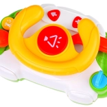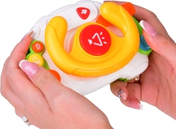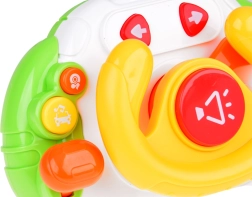Volant je navrhnutý tak, aby sa ľahko zmestil do kočíka alebo cestovnej tašky. Vďaka intuitívnym tlačidlám si deti rýchlo osvoja ovládanie: červené tlačidlo pre klaksón, žlté pre melódie (3 druhy) a modré pre zvuky a hudbu (4 druhy). Pri prehrávaní hudby sa stred volantu rytmicky rozsvieti.