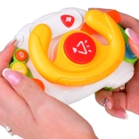 Deti si užijú zvuk štartovania motora, klaksón a smerovky s blikaním. Stred volantu sa pri hudbe rozsvieti do rytmu.