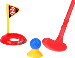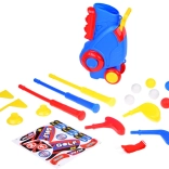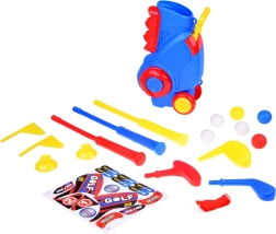 Sada obsahuje 3 farebné palice s rôznymi hlavami pre jednoduchšie údery, 6 loptičiek, 2 podstavce (tee), 2 jamky s vlajočkami a stojan/bag. Deti si precvičia mierenie, odhad sily a sústredenie, zatiaľ čo si užívajú aktívnu zábavu v interiéri aj exteriéri.