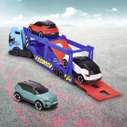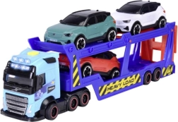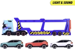 Ukážte deťom svet cestnej dopravy s detailne spracovaným autotransportérom VOLVO FH16. Model na voľnobeh je pripravený k akcii hneď po vybalení, ponúka svetelné a zvukové efekty pre ešte realistickejšiu hru a príves určený na prepravu vozidiel.
