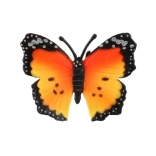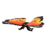 Oranžové krídla s čiernym lemom a bielymi polkruhovými bodkami napodobňujú skutočného monarchu afrického pre maximálne realistický dojem.