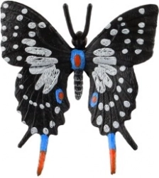 Tento kvalitný model motýľa zachytáva typické znaky rodu Papilio – elegantné čierne krídla s bielymi škvrnami a jemnými modrými a červenými akcentmi. Vďaka realistickému spracovaniu je skvelým doplnkom pre milovníkov prírody, školy aj múzeá.