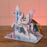 Model jednorožca vyniká pestrými farbami a dekoratívnym vzhľadom – skvelý na vystavenie po zostavení.