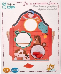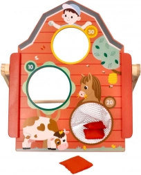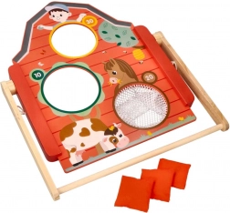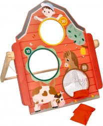 Užite si hodiny zábavy s touto krásne spracovanou drevenou hrou s farmárskym motívom. Vhodná ako pre interiérové, tak aj vonkajšie hranie, hra trénuje koordináciu ruky-oko a učí deti počítať a zbierať body. Jednoduché skladanie vďaka konštrukcii s podporou zabezpečujúcou stabilitu počas hrania.