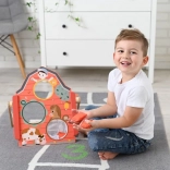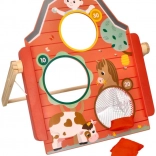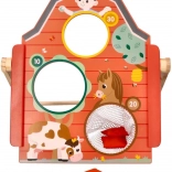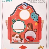Odolná drevená konštrukcia s veselými ilustráciami farmy zaručuje dlhú životnosť a bezpečné hranie.