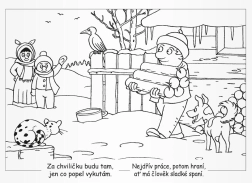 Urobte si doma zimnú pohodu s omaľovánkami MFP. Vďaka jednoduchým líniám a veľkým plochám sú vhodné aj pre začínajúcich maliarov. Každý obrázok sprevádza vianočná básnička, ktorá deťom spríjemní tvorenie a rozvíja slovnú zásobu.