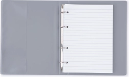 Štýlový krúžkový zápisník vo formáte A4 v elegantnej sivej farbe s odolnými PVC doskami a 4-krúžkovou mechanikou. Súčasťou je 100 linajkovaných listov, ideálnych do školy, kancelárie aj na domácu organizáciu poznámok.
