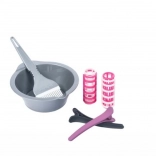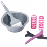 Miska, štetček, klipsy a natáčky podporia fantáziu pri „farbení“ a tvarovaní účesov. Bezpečne, bez neporiadku.