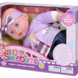 Táto bábika je dodávaná s fľaškou a tromi AG13 batériami, ktoré sú súčasťou balenia. Dostupná v troch rôznych variantoch.