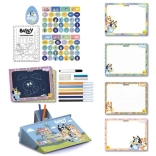 Táto školská kresliaca sada v rozkošnom batohu s motívom BLUEY motivuje deti ku kreatívnemu vyjadreniu. Vďaka ilustrovanej brožúre s návodmi sa malé ruky ľahko naučia základy kreslenia a obkresľovania, a to priamo na praktickej tabuli.
