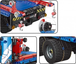 Táto detailná stavebnica kamiónu prináša autentické spracovanie s množstvom pohyblivých prvkov: otvárateľná kapota a dvere kabíny, nastaviteľné zrkadlá aj funkčný odťahový mechanizmus s hákom a zdvíhacími ramenami. Vďaka diaľkovému ovládaniu (vpred/vzad/vpravo/vľavo) cez RC ovládač alebo mobilnú aplikáciu je jazda plynulá a zábavná.