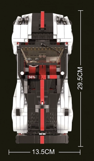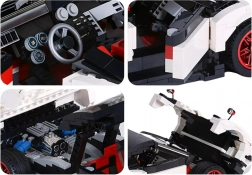 Táto prepracovaná stavebnica nadchne všetkých milovníkov áut a techniky. Reálne proporcie v mierke 1:16, kontrastné bielo‑čierne prevedenie s červenými akcentmi a funkčné prvky z nej robia skvelý model na hranie aj vystavenie. Vďaka prehľadnému obrázkovému návodu je stavba zábavná a rozvíja jemnú motoriku, priestorovú predstavivosť a trpezlivosť.