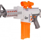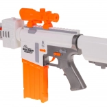 Blaster je vyrobený z kvalitného plastu a skvele padne do ruky. Dosah streľby je približne 15 metrov, čo je ideálne pre domáce aj vonkajšie bitky. Napájanie zabezpečujú 5× AA 1,5 V batérie (nie sú súčasťou balenia).