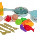Hrnček, panvica, taniere, príbory a pestrý výber potravinových doplnkov poskytujú deťom všetko, čo potrebujú na hru na kuchára.