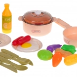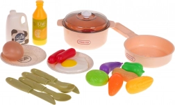 Sada 28 dielov zahŕňa hrniec s pokrievkou, panvicu, taniere, príbory a široký výber potravín. Deti si môžu pripraviť raňajky, obedy aj večere podľa fantázie.