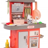 Kohútik s cirkuláciou vody (pumpička) dodáva hre na autentickosti, zatiaľ čo bohaté príslušenstvo – riad, náradie a potraviny – umožní deťom pripraviť „menu“ podľa vlastnej fantázie. Kuchynka je napájaná 3× AA 1,5 V (nie sú súčasťou balenia).