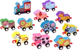 Drevený farebný vláčik so zvieratkami je kvalitná a bezpečná hračka, ktorá podporuje rozvoj fantázie, kreativity a motorických schopností detí. Vďaka jasným farbám a zábavnému dizajnu prináša radosť z učenia sa číslam a zvieratám.
