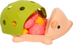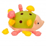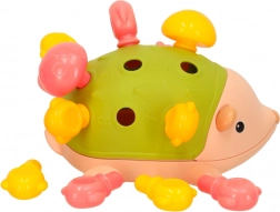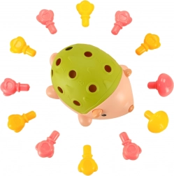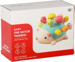 Tento farebný ježko s odnímateľnými kolíkmi skvele rozvíja zručnosti detí od 18 mesiacov. Deti kolíky ľahko vyťahujú a zasúvajú do očíslovaných otvorov, čím trénujú úchop, presnosť a sústredenie. Jemné, príjemné farby a priateľský vzhľad prirodzene priťahujú pozornosť.