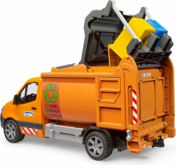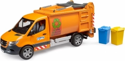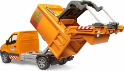 Toto mestské smetiarske vozidlo BRUDER verne napodobňuje skutočný MERCEDES-BENZ Sprinter. Vďaka kompaktným rozmerom sa „dostane“ všade, kde veľké smetiarske autá neprejdú. Pri vyklápaní popolníc sa automaticky otvára strešná klapka a po spustení sa opäť zatvorí. Zadné vyklápacie dvere umožňujú jednoduché vysypanie nákladu.