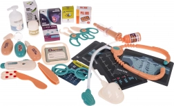 Sada obsahuje rôzne lekárske nástroje ako stetoskop, teplomer, dentálne zrkadielko a ďalšie.