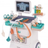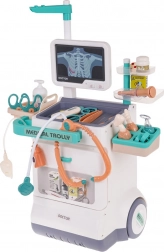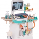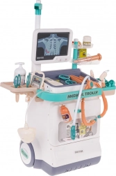 Tento kúzelný lekársky vozík je ľahký a ľahko ovládateľný vďaka veľkým kolieskam a praktickému úchytu. Vaše dieťa sa môže stať lekárom, oftalmológom, kardiológom alebo zubárom. Sada obsahuje panel s monitorom, ktorý imituje zvuky srdcového tepu a alarmu, a je možné meniť obrázky EKG a RTG. Vhodné pre deti od 3 rokov.