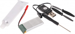 Balenie obsahuje všetko potrebné na zostavenie, vrátane náhradných vrtúľ, nabíjačky USB a batérie, čo zaisťuje, že lietadlo bude pripravené k letu behom chvíle.