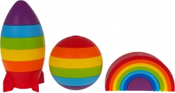 Táto univerzálna senzorická stavebnica prináša deťom pestrý svet tvorenia: z 19 ľahkých a odolných dielov ľahko poskladajú raketu, dúhové oblúky aj farebnú guľu. Hra s farbami, tvarmi a skladaním prirodzene rozvíja jemnú motoriku, logické myslenie a trpezlivosť, zatiaľ čo výrazné farby podporujú rozpoznávanie farieb a zmyslové vnímanie.