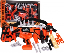 Bohato vybavený detský set náradia s nastaviteľným pásom poteší malých majstrov od 3 rokov. Obsahuje všetko potrebné na hru na opravára – pílenie, vŕtanie, skrutkovanie aj zatĺkanie. Súčasťou je manuálna inerčná vŕtačka s vymeniteľnými bitmi, ktorá sa zaobíde bez batérií – stačí stlačiť tlačidlo. Na bezpečné a zábavné hranie v živých farbách, rozvíja jemnú motoriku, predstavivosť a role-play zručnosti.