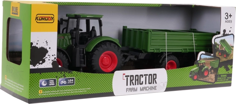 . | Traktor s prívesom vyrobený v mierke 1:24, pre deti od 3 rokov. Traktor bol veľmi realisticky zreprodukovaný podľa skutočného poľnohospodárskeho stroja s množstvom detailov. Vyrobený je z najkvalitnejšieho plastu v žiarivých farbách. Má veľké gumové pneumatiky pre dobrú priľnavosť. Príves traktora je možné odpojiť, rovnako spustiť jeho bočné bočnice a zdvihnúť zadnú bočnicu. .. Funkcie traktora: . - vhodný pre deti staršie ako 3 roky, .- vyrobený z najkvalitnejších materiálov, .- vyrobený v mierke 1:24, .- pohyblivé prvky: príves (hore, dole), - sklopné bočné bočnice a zdvihnutá zadná bočnica, .- gumové pneumatiky, .- realistická reprodukcia, .- otočné voľnobežné koleso. . |