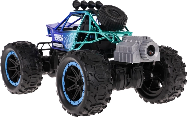 Veľké gumové pneumatiky s výrazným vzorom držia stopu aj na nerovnom povrchu, zatiaľ čo možnosť jemne doladiť trim riadenia pomáha udržať auto v priamom smere. Nabíjateľný akumulátor 3,7 V 800 mAh je súčasťou balenia, nabíjanie prebieha cez priložený USB kábel.