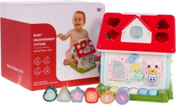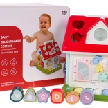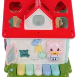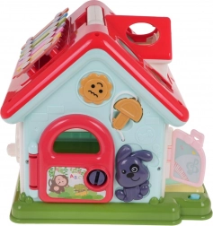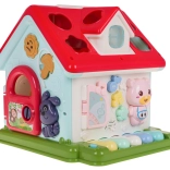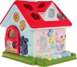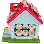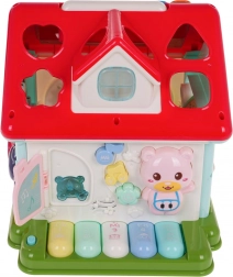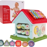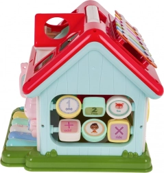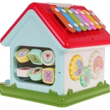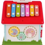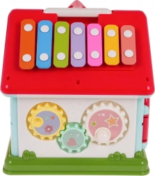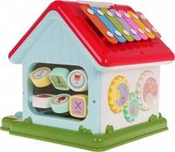 Strecha domčeka skrýva xylofón pre prvé muzicírovanie a sorter tvarov so 6 farebnými kockami. Deti si precvičia jemnú motoriku, koordináciu oko–ruka aj logické myslenie. Robustné spracovanie z kvalitného plastu v živých farbách zaujme na prvý pohľad a vďaka sklopnému madlu domček ľahko prenesiete.