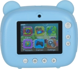 Roztomilý detský instantný fotoaparát v dizajne modrého medvedíka, ktorý vďaka integrovanej termotlačiarni okamžite vytlačí čiernobiele snímky. Má dva objektívy, nahráva video 1080p a v balení nájdete kartu 32 GB, 3 rolky papiera, 6 fixiek aj šnúrku na krk.