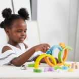 Päť oblúkov dúhy učí deti rozpoznávať farby a ich poradie, zároveň trénujú trpezlivosť a rovnováhu pri vyvažovaní.