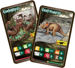 Každá karta prináša detailnú ilustráciu a prehľadné štatistiky (napr. dĺžka, hmotnosť, rýchlosť), ktoré robia z hry zábavné porovnávanie aj poučný zážitok.