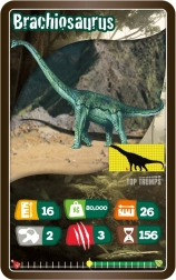 TOP TRUMPS – Dinosaury prináša napínavé porovnávanie parametrov legendárnych pravekých tvorov. Každá karta obsahuje pútavú ilustráciu a kľúčové štatistiky, vďaka ktorým môžu hráči múdro voliť kategórie a prekabátiť súperov. Kompaktný tuck box uľahčuje prenášanie, takže si hru vezmete kamkoľvek – na výlet, prázdniny aj návštevu.