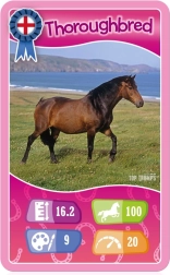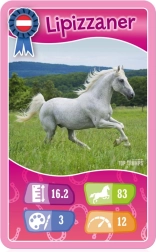 Pravidlá sú jednoduché: hráči si rozdelia celý balíček, začínajúci hráč zvolí kategóriu na svojej hornej karte a všetci porovnajú hodnoty. Ten s najvyššou hodnotou berie karty a vkladá ich naspodok svojho balíčka. Hra je rýchla, prehľadná a vzdelávacia – skvelá voľba pre milovníkov koní aj začínajúcich hráčov.
