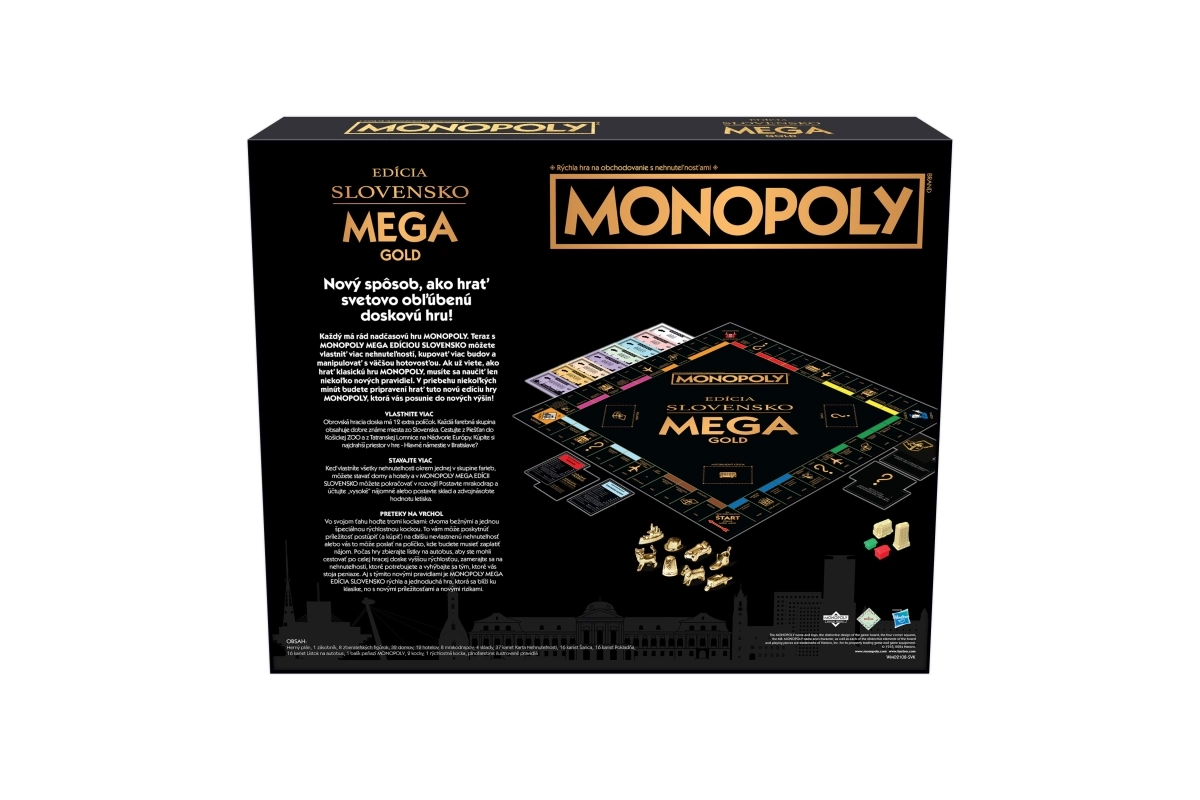 Užite si nadčasovú zábavu s edíciou Monopoly Mega Slovensko. Táto rozšírená verzia prináša viac nehnuteľností, viac budov a väčšiu hotovosť pre ešte intenzívnejší herný zážitok. Ak poznáte klasické pravidlá, naučíte sa len pár noviniek. Hra je v slovenčine, pre 2–6 hráčov a vek 8+.