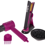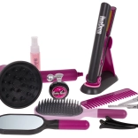 Táto bohato vybavená sada premení každú detskú izbu na malý salón. Deti si môžu vyskúšať fúkanie, rovnanie aj styling vďaka vymeniteľným nadstavcom sušiča (difuzér, koncentrátor, Root Boost) a bezpečnej žehličke na batérie so svetlom a zvukmi. Reálne efekty podporujú napodobenie skutočného kaderníckeho prostredia a zábavný role-play.