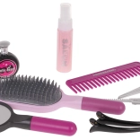 Nožnice, efilačné nožnice, hrebeň, kefa, zrkadielko, natáčky, sponky, rozprašovač aj stojan – všetko pre kreatívny styling a upratané hranie.