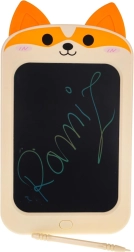 Farebný tablet s líškou pre deti od 3 rokov. Ideálny ako poznámkový blok alebo podložka na kreslenie. Je ľahký, praktický a má uhlopriečku displeja 8,5 palca. Na obrazovke tabletu vznikajú farebné kresby. V spodnej časti tabletu sa nachádza tlačidlo, ktorým možno nakreslený obrázok okamžite vymazať. Toto tlačidlo nefunguje, ak je na zadnej strane aktivovaný zámok. Ten chráni tablet pred samovoľným vymazaním poznámok, napr. keď je tablet v batohu. Na zadnej strane tabletu je priestor pre stylus, ktorý je súčasťou sady, a nachádzajú sa tu aj zárezy s tvarmi písmen abecedy. Hračka je napájaná batériami CR2025, ktoré sú súčasťou balenia. .. Funkcie tabletu: . - pre deti od 3 rokov, .- ľahký, praktický, .- vyrobený z kvalitných materiálov, .- môžete vytvárať farebné kresby vďaka rôznym farebným zónam na obrazovke, .- uhlopriečka obrazovky 8'5", .- nevyžaruje svetlo, nemá nepriaznivý vplyv na detské oči, .- nahrádza bloky a zošity, čím šetrí životné prostredie, .- kreslenie nešpiní na rozdiel od pier a kried, .- má tlačidlo na okamžité vymazanie poznámok, .- má zámok proti svojvoľnému vymazaniu kresby, .- vyzerá skvelo, - súčasťou balenia je stylus. . |