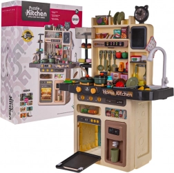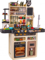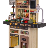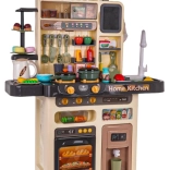 Táto priestranná detská kuchynka premení izbu na malú gastronomickú dielňu. Deti si užijú realistické prvky ako podsvietené horáky so zvukmi vyprážania a varenia, para z jedného z horákov a kohútik s tečúcou vodou. Otvorte rúru, uložte potraviny do chladničky s dávkovačom vody, roztočte ovládacie gombíky a rozsvieťte digestor s hudobným panelom.
