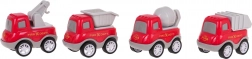- 4 vozidlá v sete: sklápač, miešačka, žeriav a autíčko s kontajnerom