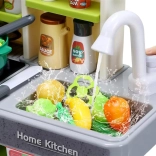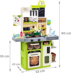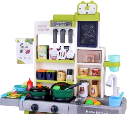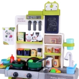 Interaktívna kuchynka so svetelnými efektmi, zvukmi, parou, tečúcou vodou a vodou z kohútika je ideálnou hračkou pre malých kuchárov, ktorá ponúka realistické kuchynské dojmy.