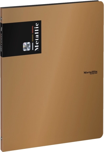 Polypropylénový zakladač v metalickom medenom odtieni so 4-krúžkovou mechanikou, ideálny pre organizáciu vašich dokumentov.