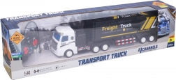 Zábavný kamión na diaľkové ovládanie s dĺžkou 41 cm v elegantnej čiernej farbe. Ponúka frekvenciu 27 MHz, svetelné efekty a batériový pack 3,7 V s USB káblom v balení; 2× AA do ovládača nie sú súčasťou.