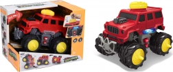 Terénne auto s efektmi 15,5 cm prináša veľa zábavy vďaka svetelným, zvukovým aj pohybovým efektom na stlačenie tlačidiel. Ovládanie je jednoduché cez tlačidlo na streche a bočné tlačidlá (zvuk motora, hudba, jazda dopredu aj dozadu) a vďaka 3× AAA batériám v balení je pripravené okamžite vyraziť.